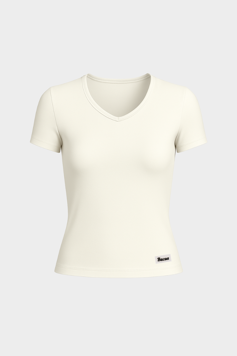 The Fitted V-Neck Top has a body-hugging silhouette that’s snug without being restrictive—perfect for layering or wearing solo.